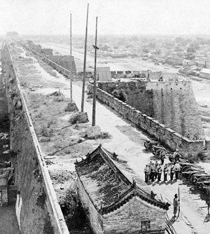 Русская батарея на городской стене Пекина. Пекинские стены были хорошо укреплены. Их срыли только в 1949 году. Фото: B. W. Kilburn Company из архива Библиотеки Конгресса США
