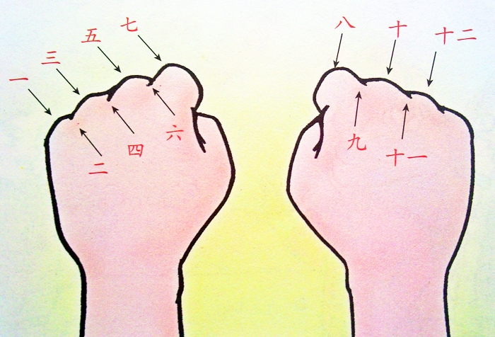 На этой картинке показан школьный способ узнать, сколько дней в месяце — 31 или меньше. Бугорки означают, что дней — 31. Ямки — менее. А мы можем в дополнение потренировать названия месяцев по-китайски!