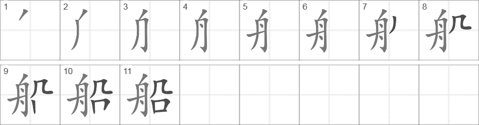 Написание иероглифа 船