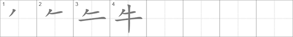 Написание иероглифа 牛